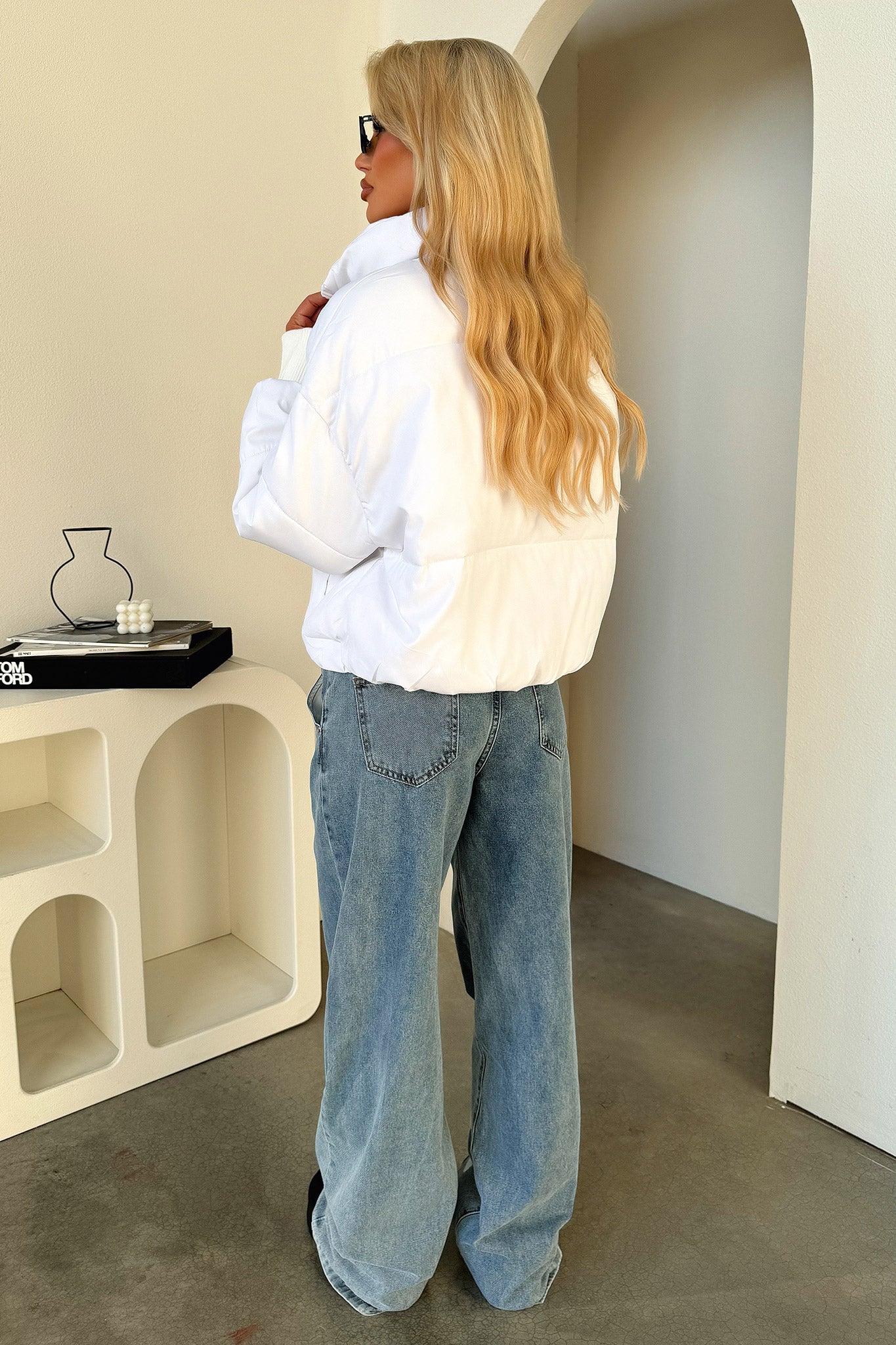 Keepin' you cozy this winter! The Ajax Puffer offers a super soft and comfy puffer material. long sleeves with cuffed ribbed ends. a high neck collar. zip up front and two front pockets. Style her with a pair of flares and a basic black crop.