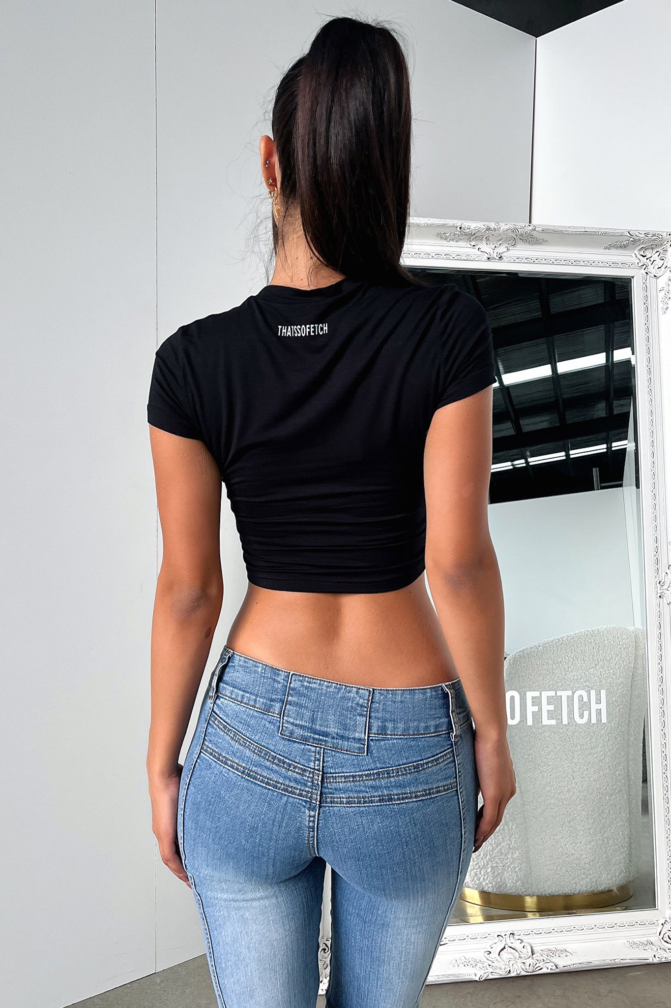The Amos Baby Tee is the perfect summer staple. Crafted from stretchy and soft fabric. it is designed with a round neckline and short sleeves for optimal comfort and movement. She pairs perfectly with denim shorts and sneakers for a look that is casual and chic.