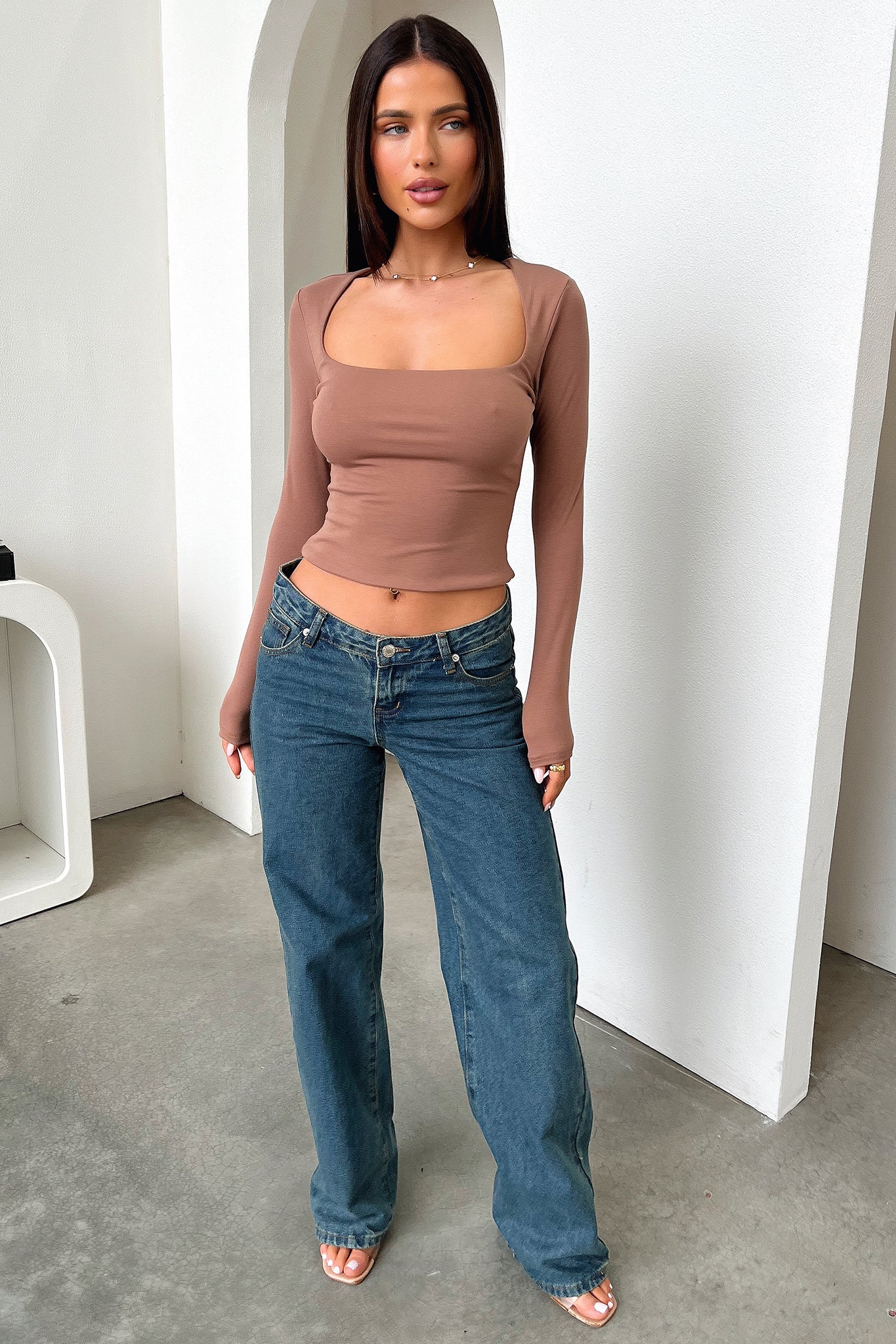 Spice up your style with the Andre Long Sleeve Top! With its square neckline. body con fit. and double lined body. this wardrobe staple is perfect for those days when you don't feel like putting in too much effort but still want to look amazing! Pair her with some jeans for a simple and cozy fit that will have you looking and feeling fab!