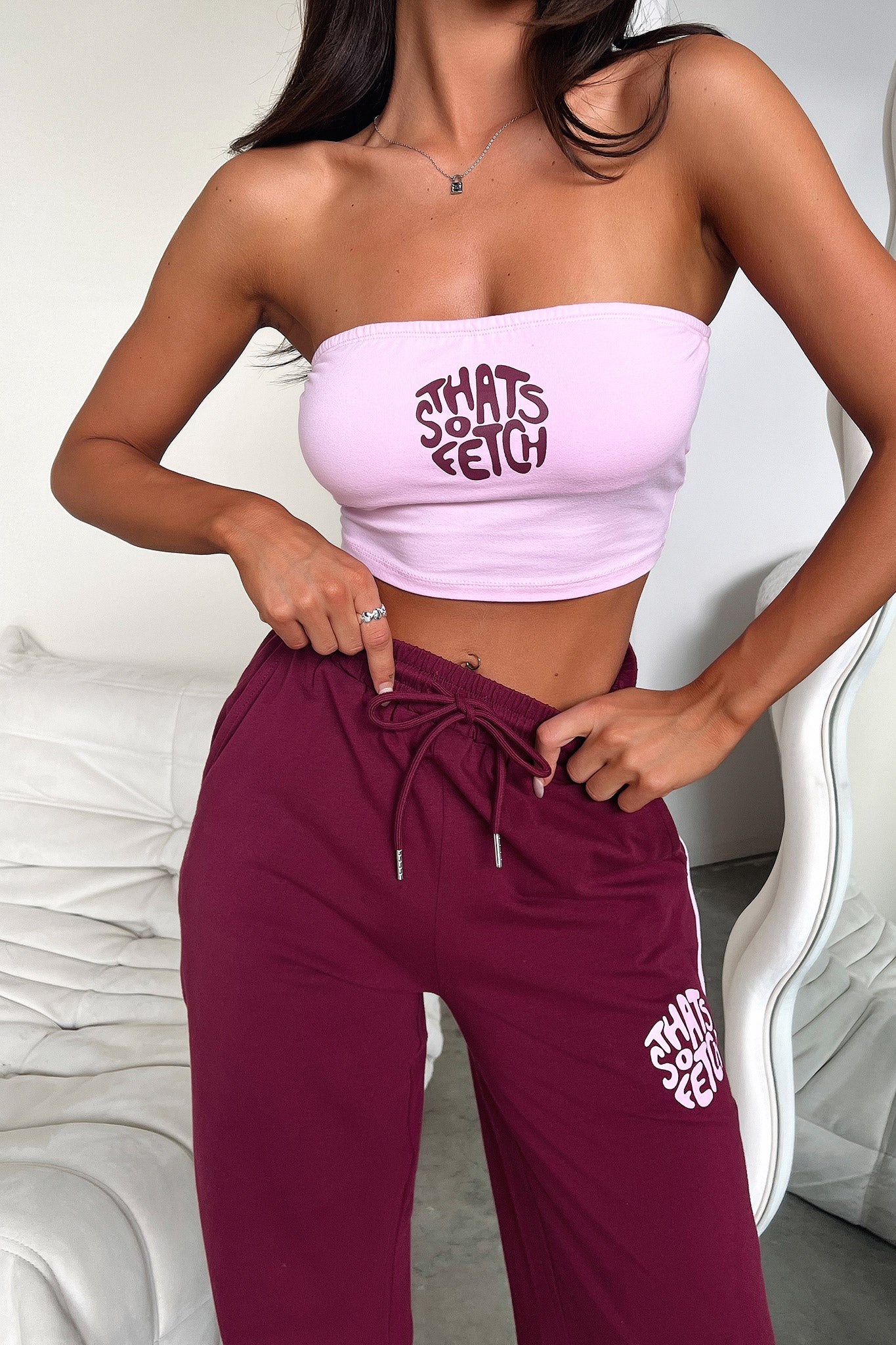 Unleash your inner fashionista with the Beckham Bandeau Top in grey. This cropped top features a unique bandeau style and an exclusive Coutiqo logo on the center. The grip tape on the inside ensures a secure fit. Pair it with the matching pants for the ultimate combo!