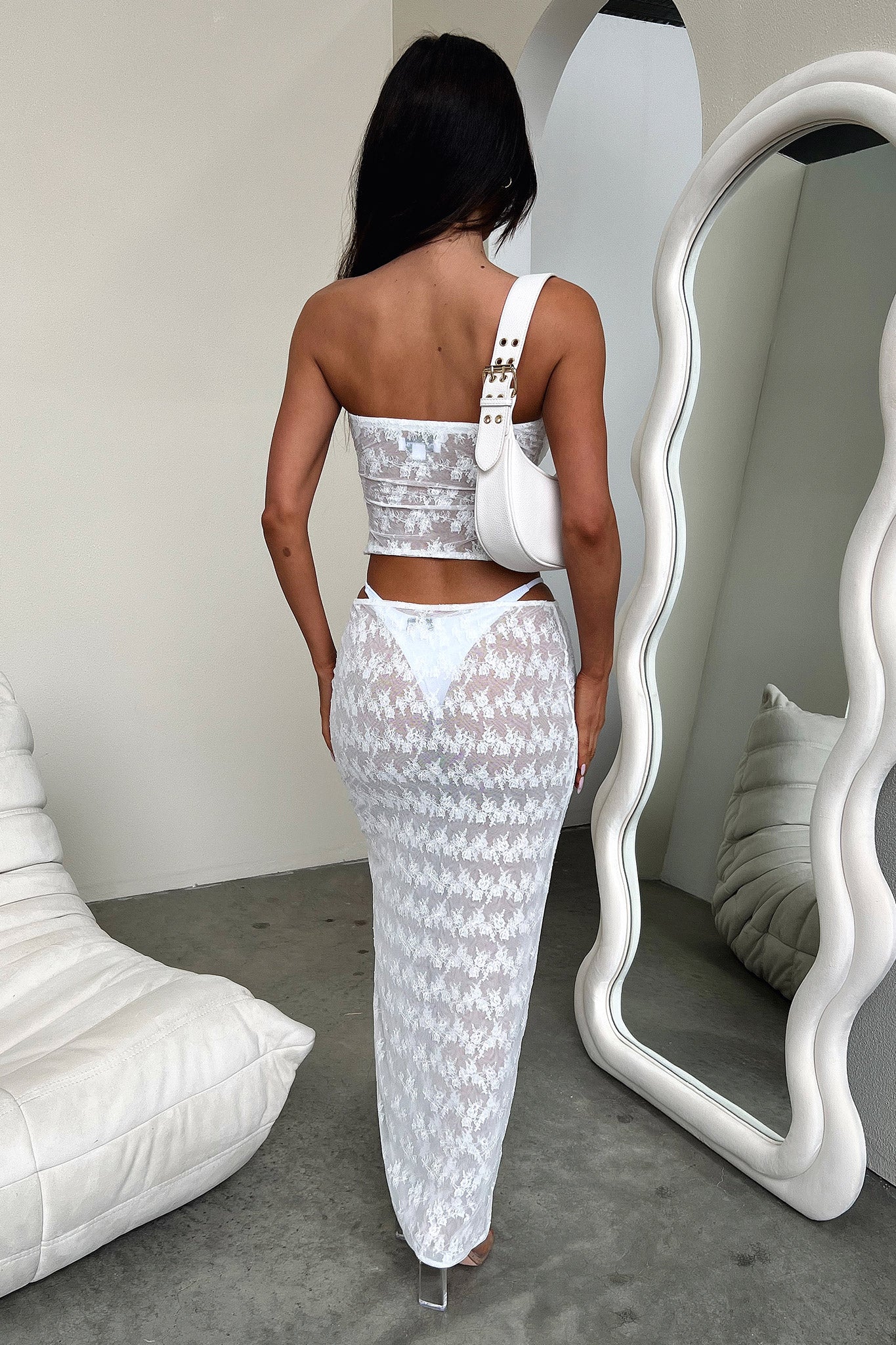 The Elia Skirt is a show-stopper - a must-have addition to your wardrobe for those days when you need to make an entrance! Crafted from flirty floral lace. featuring a thigh-high side-slit and low-rise fit. this is one skirt you won't want to miss! Oh. and don't forget to pair her with the matching Elia Crop and some heels for a look that's sure to turn heads. Ready. set. slay!